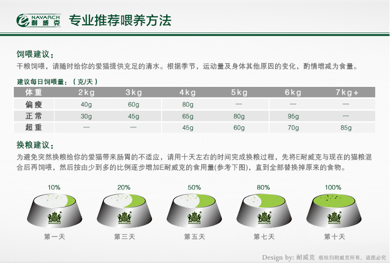 干糧飼喂,請隨時給您的愛貓提供充足的清水。根據季節、運動量及身體其他原因的變化,酌情增減喂食量。