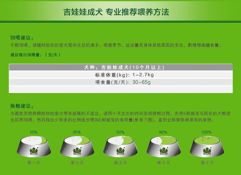 干糧飼喂,請(qǐng)隨時(shí)給您的愛(ài)犬提供充足的清水。根據(jù)季節(jié)、運(yùn)動(dòng)量及身體其他原因的變化,酌情增減喂食量。